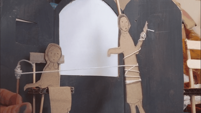 I am currently thinking that I would like elements of the puppet show to reflect the process of lacemaking itself. I have decided (so far) that I want to use marionettes (or rod marionettes) because the strings reflect the threads that are used to make lace. I would like these small puppets to be carved from wood and stained so that they reflect the eclectic wooden bobbins that are used in lacemaking. I wanted to use white lace thread for the strings but further experiments are needed, as the white threads might be too visible and distracting. Here are some images to show my thought process about the structure of the show.