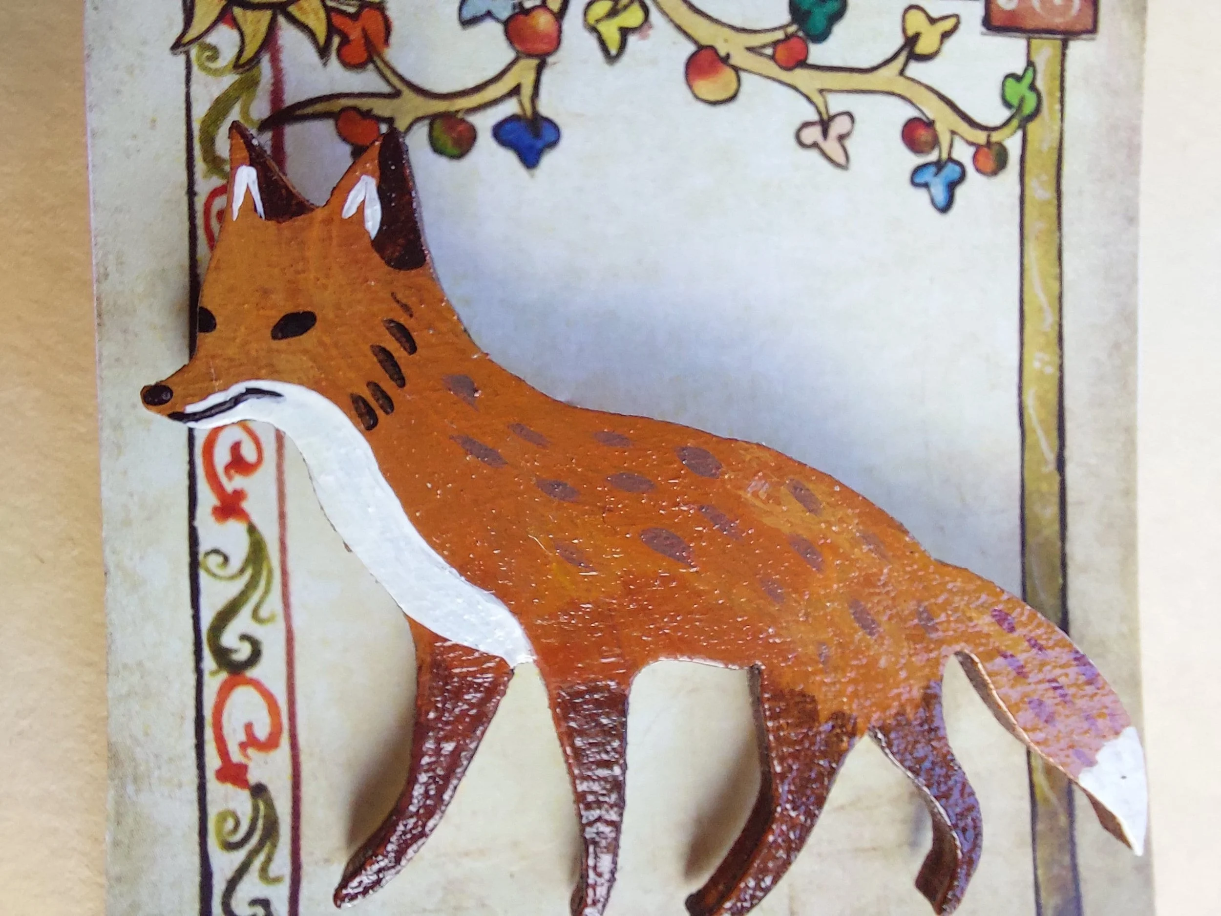 A wooden laser cut brooch designed and hand-painted by me! This one is a little red fox, inspired by the many urban foxes that hang out around Brighton where I live. I painted her by hand with acrylic and finished with shellac. She has two butterfly clasps on the back (choose between metal or rubber).