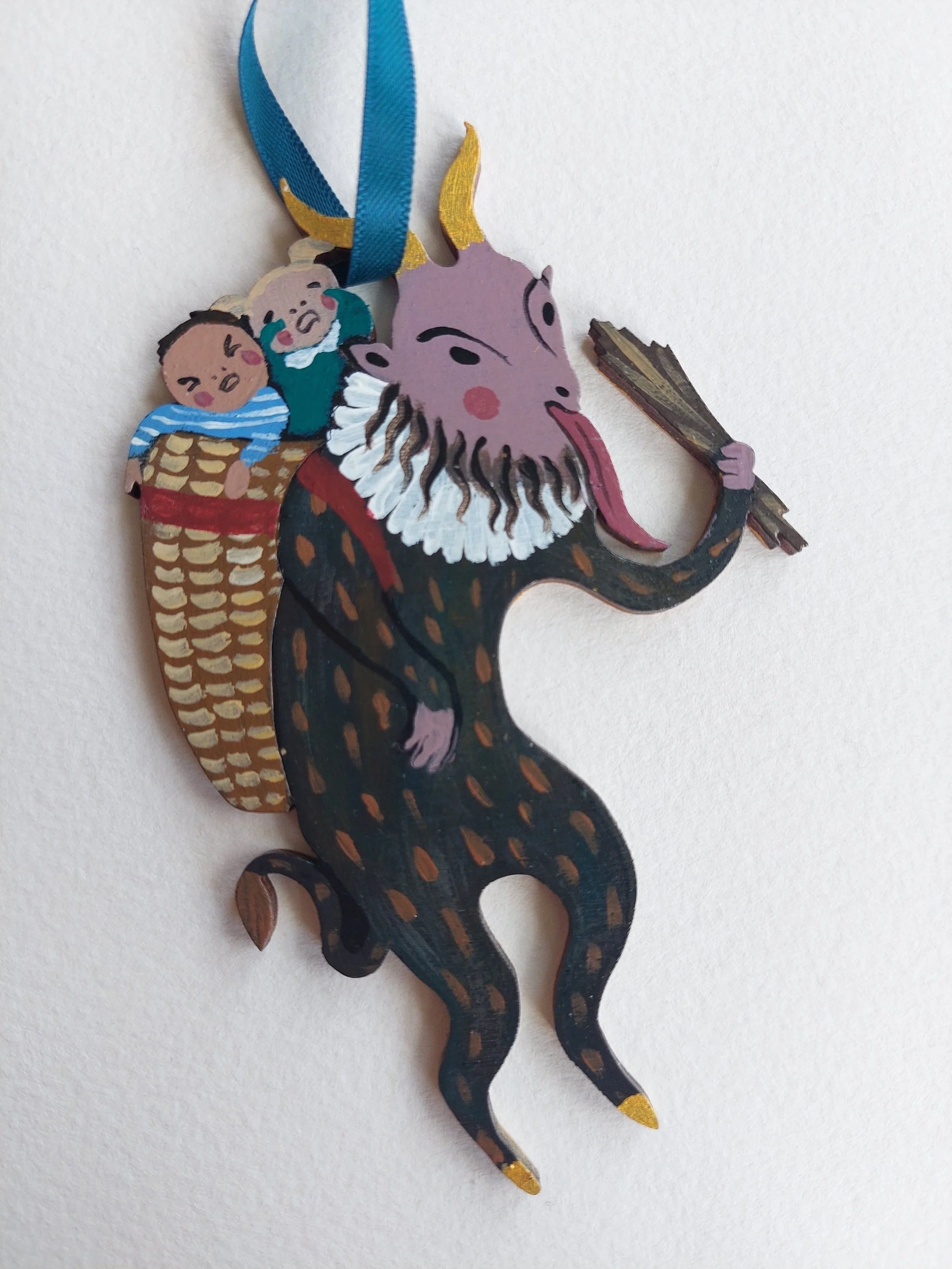 Happy Krampus! Here is an original, hand painted Krampus Christmas decoration, designed and made by me. Every one is laser cut from FSC certified 3mm plywood, and painted entirely by hand with acrylic, so every one is a one-off and completely unique.